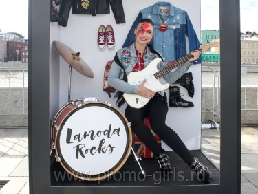 Промоутеры рекламировали известный бренд Lamoda, они находились рядом со специально оборудованной фотозоной, предлагали посетителям сфотографироваться, проконсультировавшись со стилистом, который находился рядом и дополнял образ аксессуарами, и таким образом почувствовать себя настоящей британской рок-звездой. Динамичный и яркий внешний вид девушек также отражал направление музыкального фестиваля, в рамках которого проводилась рекламная акция.