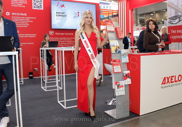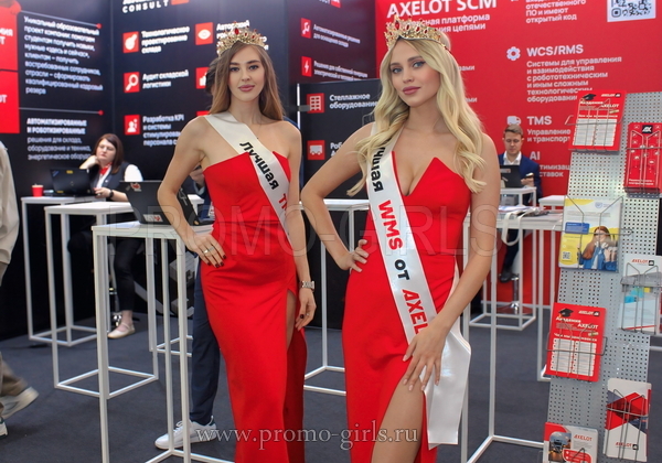 Девушки модельной внешности работали в качестве промоутеров. Они перемещались по всему выставочному павильону и привлекали внимание к бренду роскошными и яркими образами в стиле королев красоты.